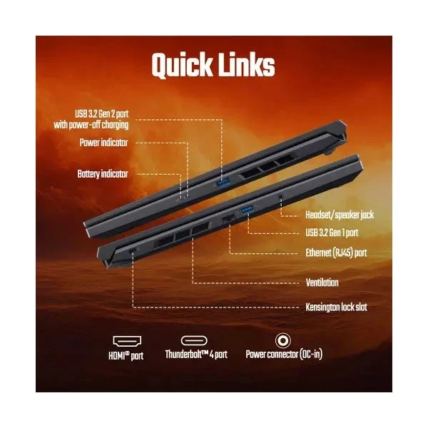 همچنین گرافیک انویدیا مدل RTX4050 با حافظه اختصاصی 6 گیگابایتی تجربه بسیار خوبی را در اجرای بازی‌ها در اختیار شما قرار خواهد داد. از نظر تعدد پورت‌‌ها هم کم و کسری وجود ندارد و از LAN گرفته تا پورت USB و HDMI و تاندربولت را در اختیار خواهید داشت. از دیگر ویژگی‌های این مدل می‌توان به نورپردازی کیبورد و وبکم بسیار باکیفیت اشاره کرد. این لپ تاپ توسط شرکت وارد کننده کاستوم شده و برخی از مشخصات آن ارتقا یافته است.